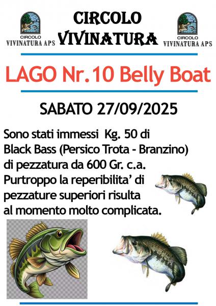 Gentili soci, si comunica che nel La go Nr.10 Belly Boat sono stati immessi 50 Kg di Black Bass di pezzatura da 600 Gr. circa.